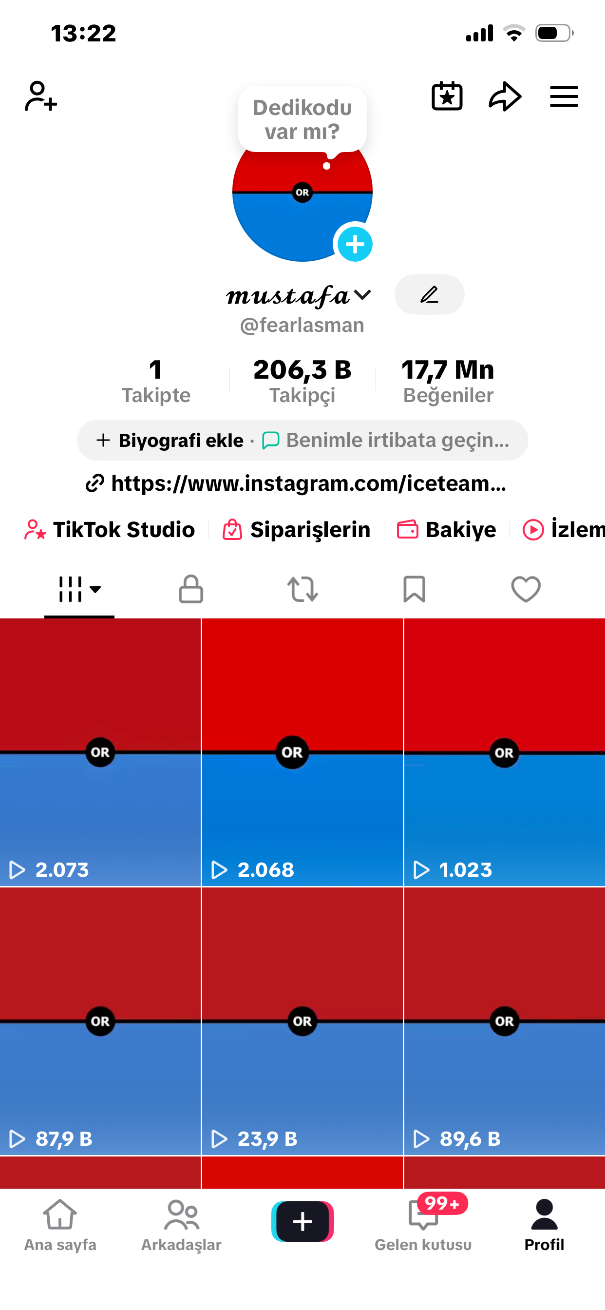 206K 17.7 Mn Beğenili TikTok Hesabk